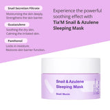 Wake up to visibly refreshed and rejuvenated skin with the TIA’M Snail & Azulene Sleeping Mask, a powerful overnight treatment that soothes, nourishes, and hydrates your complexion. This luxurious sleeping mask leaves you with a refreshed complexion by the morning.