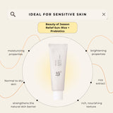 Protect your skin with Beauty of Joseon Relief Sun: Rice + Probiotics, a lightweight sunscreen that offers powerful SPF50+ PA++++ protection while deeply nourishing and calming your complexion